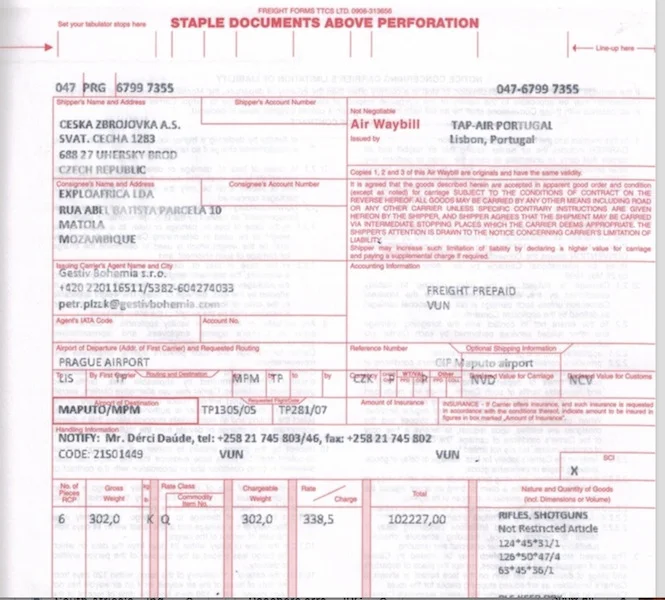 In the investigation of the Conflict Awareness Project determined, and the Česká Zbrojovka Uherský Brod confirmed that hundreds of caliber rifles 375 and 458 seized in South Africa, and identified by their serial numbers had been sold to Cacicambria companies, Fabitrade, Fabicaça and ExploAfrica.